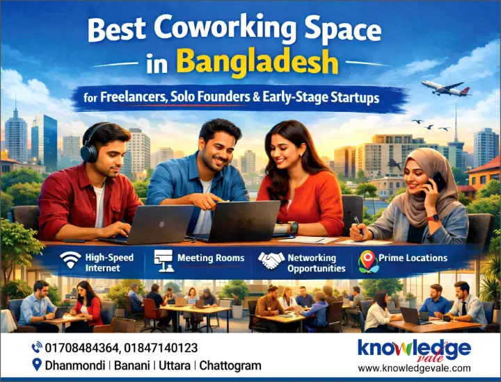 KnowledgeVale stands out as one of the most well-rounded coworking spaces in Dhaka for professionals who take their growth seriously. As a concern of Daffodil Group, it combines a modern shared office with a strong focus on learning, training, and practical skills, which makes it especially attractive for startups, freelancers, trainers, and small teams.